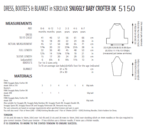 5150 Dress, Bootee's & Blanket in Snuggly Baby Crofter DK Pattern