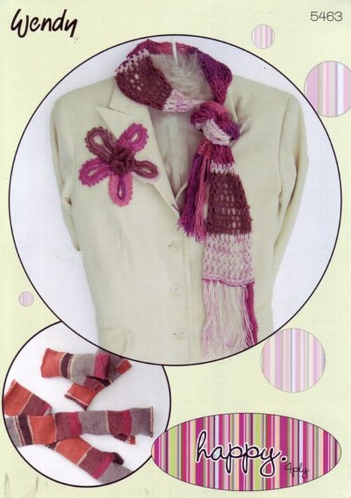 Wendy Happy 4 Ply Fignerless Mittens Hat, Scarf and Flower Motif