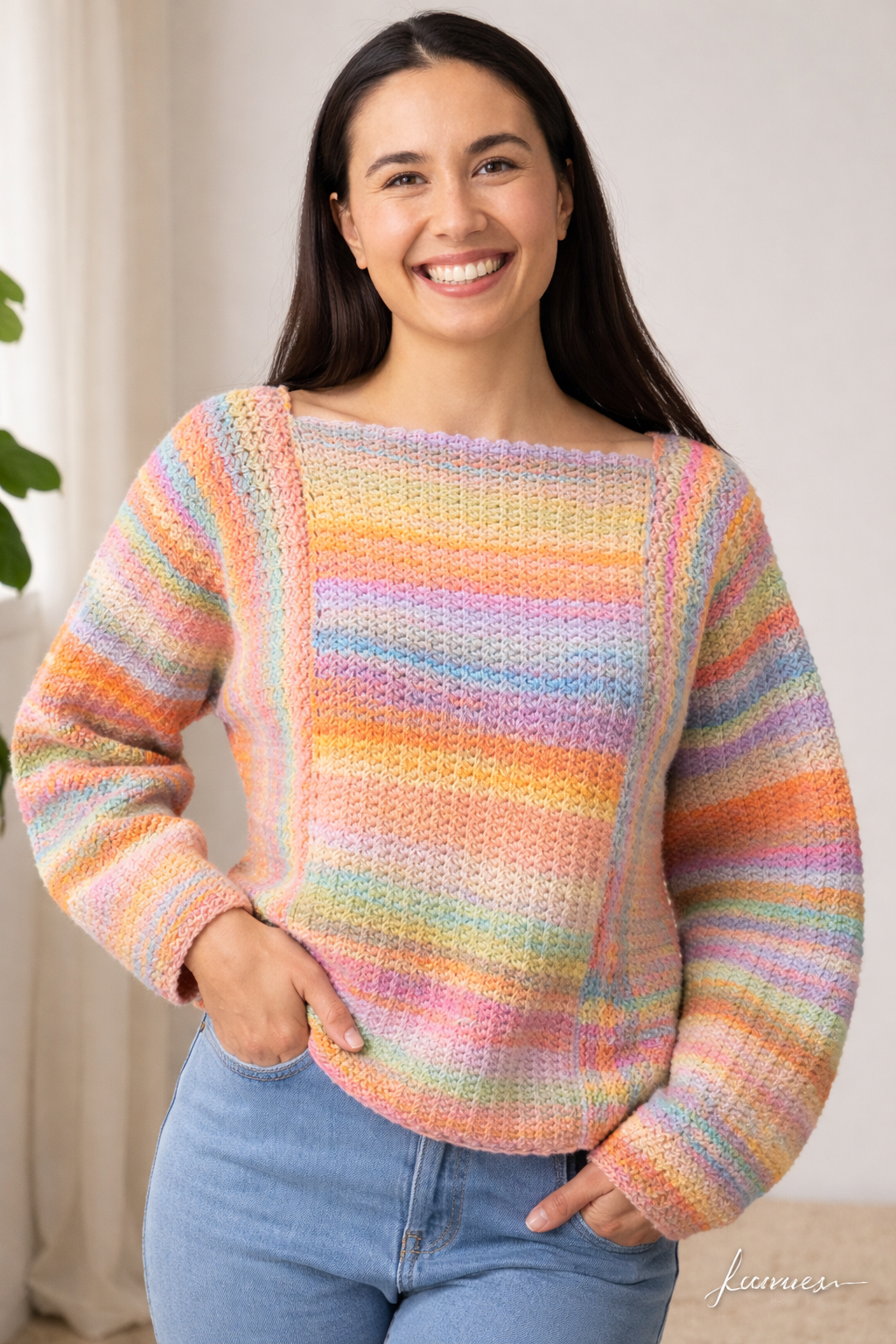 9009 Sunny Sierra Crochet Jumper Pattern – Colourful Women’s Knit
