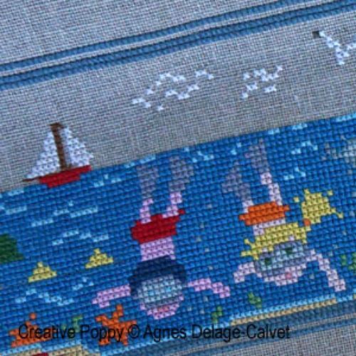 This is a very colourful and sunny beach scene, full of fun details to stitch.