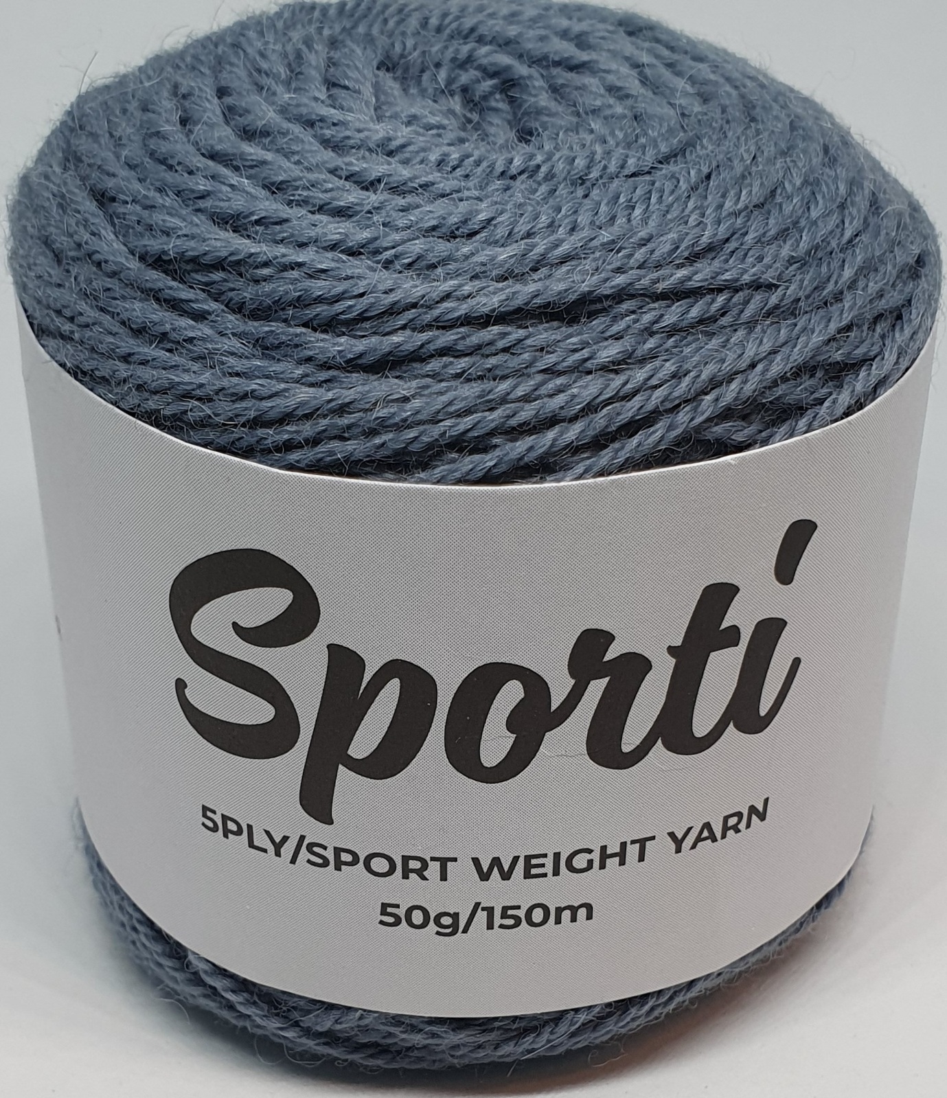 Sporti 5ply Sport Weight Yarn comes in a wide variety of colours. Sport weight yarn is most commonly used in American knitting patterns and is slightly thicker than a 4ply yarn but thinner than double knitting; it's often referred to as 5 Ply. Typically you will achieve a tension of 24-26sts on 3.25-3.75mm needles.