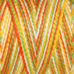 100% cotton variegated dyed yarn with a beautiful crimpy, spiral plied texture.
