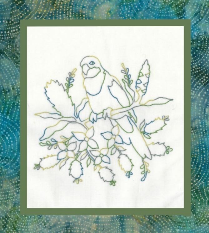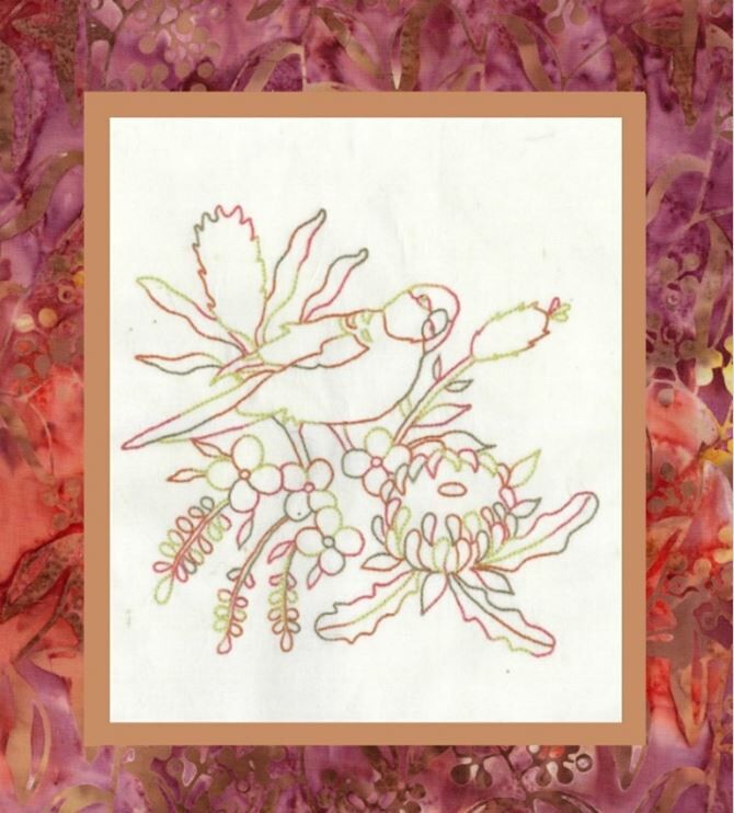 Pattern only: Each pack includes a pre-printed stitchery centre and two coordinating batik borders.
