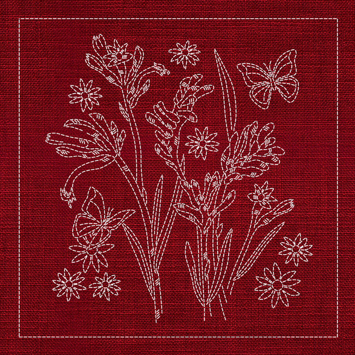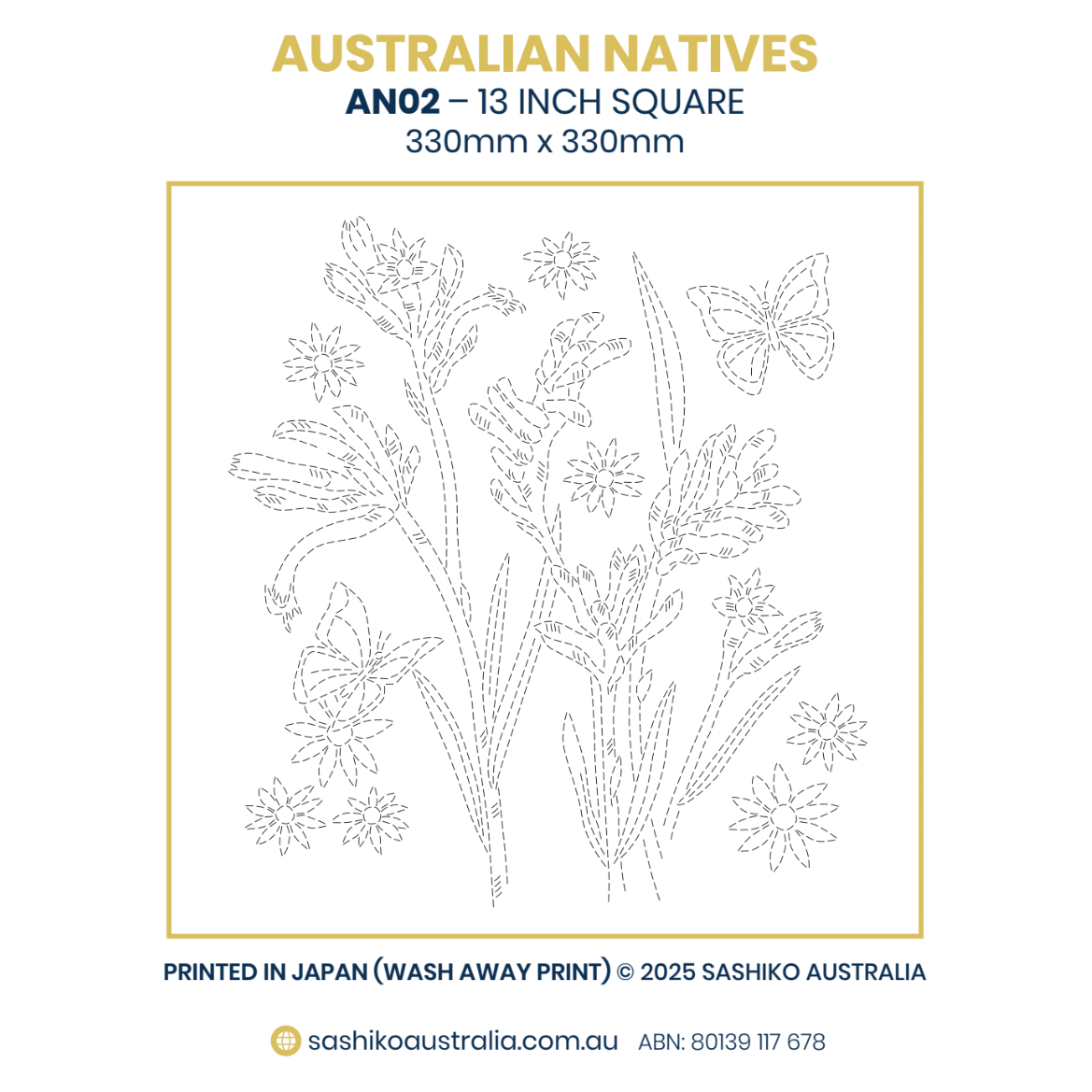 The Australian Native Floral Collection is inspired by the distinctive forms and textures of Australian native flowers, translated into flowing sashiko stitch lines.