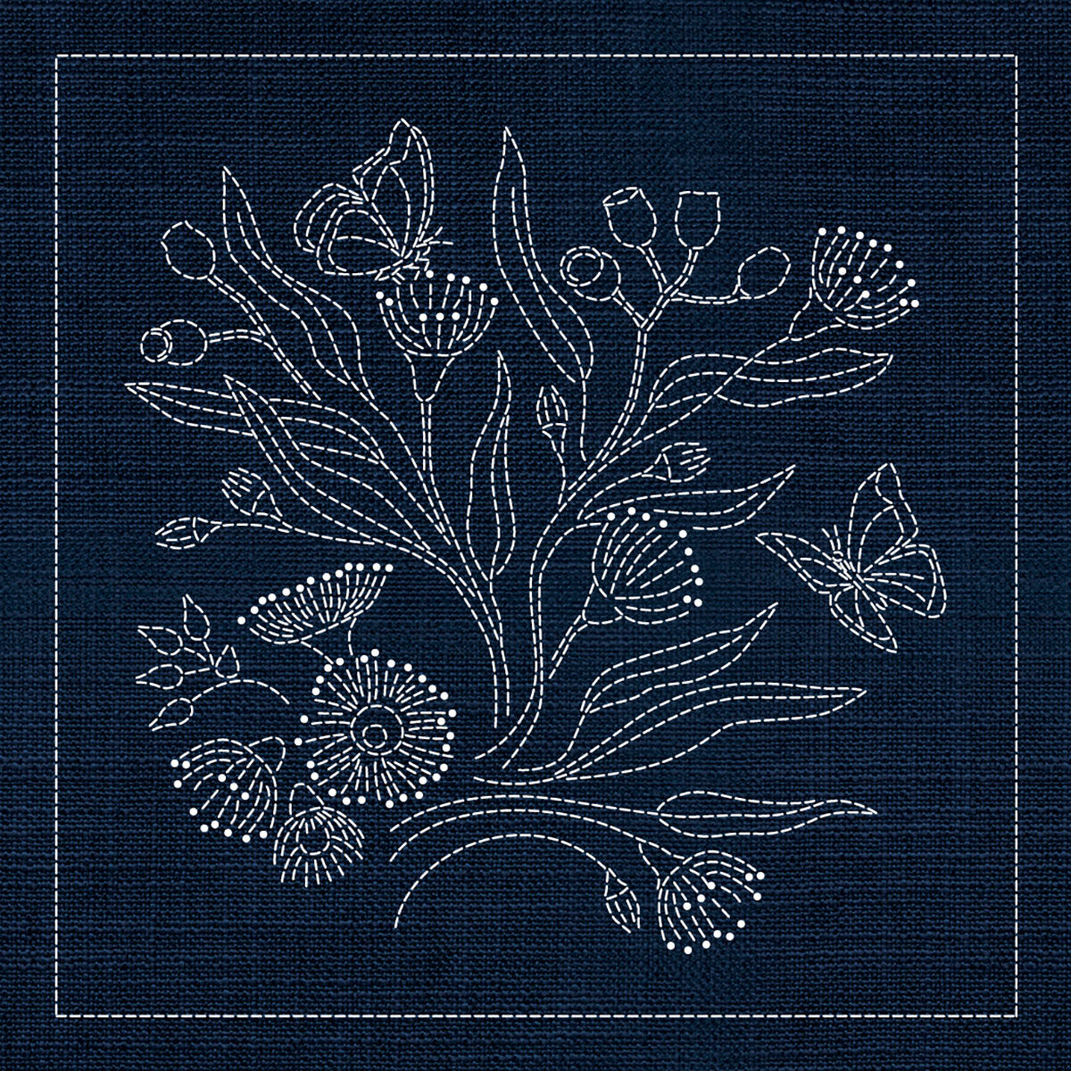 The Australian Native Floral Collection is inspired by the distinctive forms and textures of Australian native flowers, translated into flowing sashiko stitch lines.