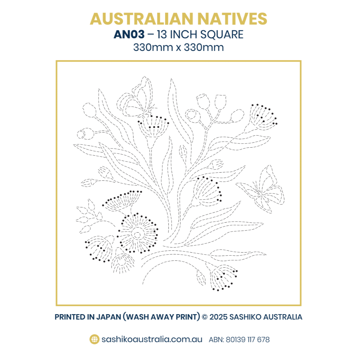 Australian Native Flowers – AN03 Sashiko Panel