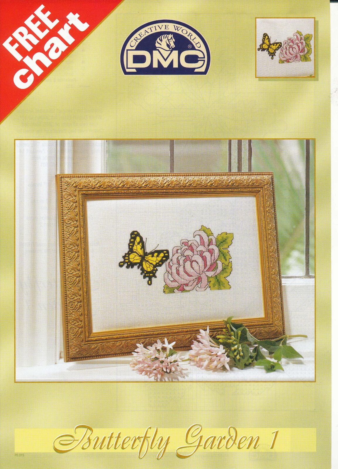 Butterfly Garden 1 is a free cross stitch pattern from DMC Creative World, featuring a delicate butterfly alongside a soft floral bloom.