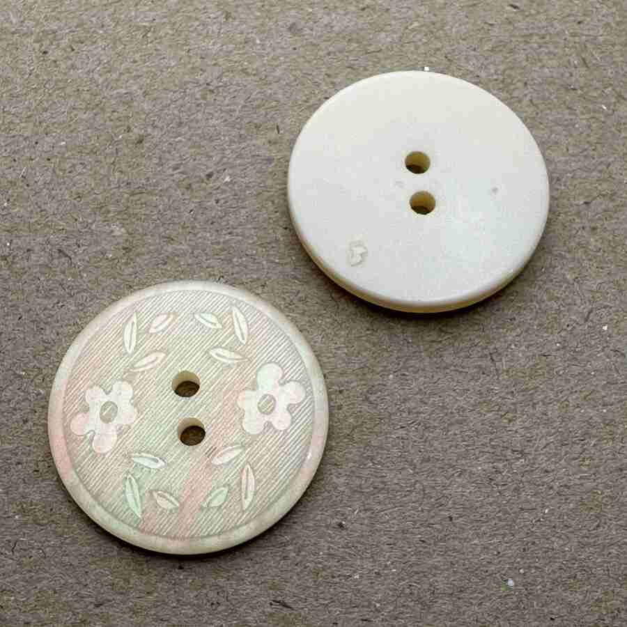 Button - 18mm 2 Hole Laser Etched Floral 20 Cream