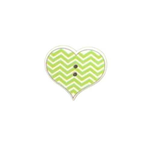 Button - 27mm Green Zig Zag Heart