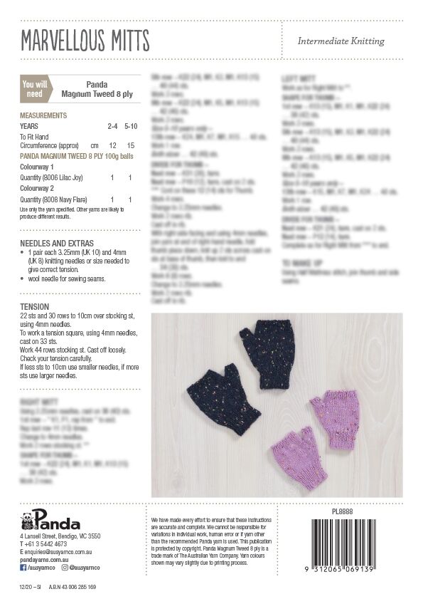 Knit this super fun jumper and mitts in Panda Magnum Tweed 8 Ply