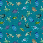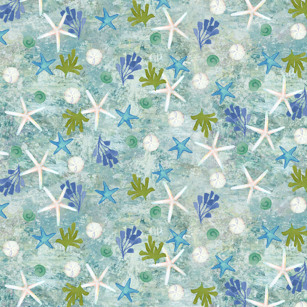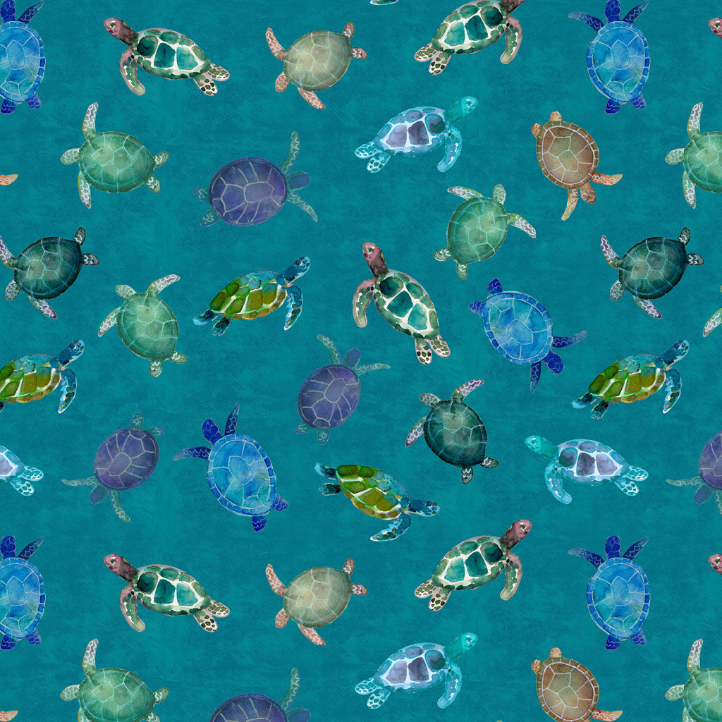 Coral Reef by Sue Zipkin brings the colour and movement of tropical ocean life into a bright, watercolour-styled fabric range. The collection features fish, turtles, coral, starfish, shells, and softly textured backgrounds in aquas, blues, greens, pinks, and warm coastal neutrals.