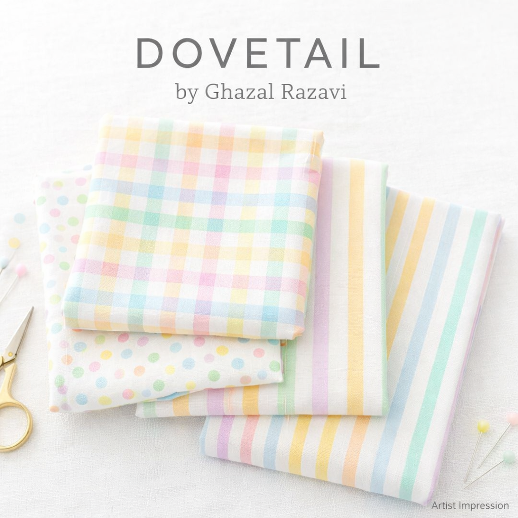 Dovetail by Ghazal Razavi for Figo Fabrics is a light-hearted, modern collection built around soft pastel colour and simple, rhythmic design.
