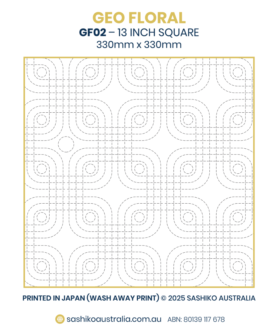 GF02 – Interlocking Geometric Sashiko Panel (13″ Square)