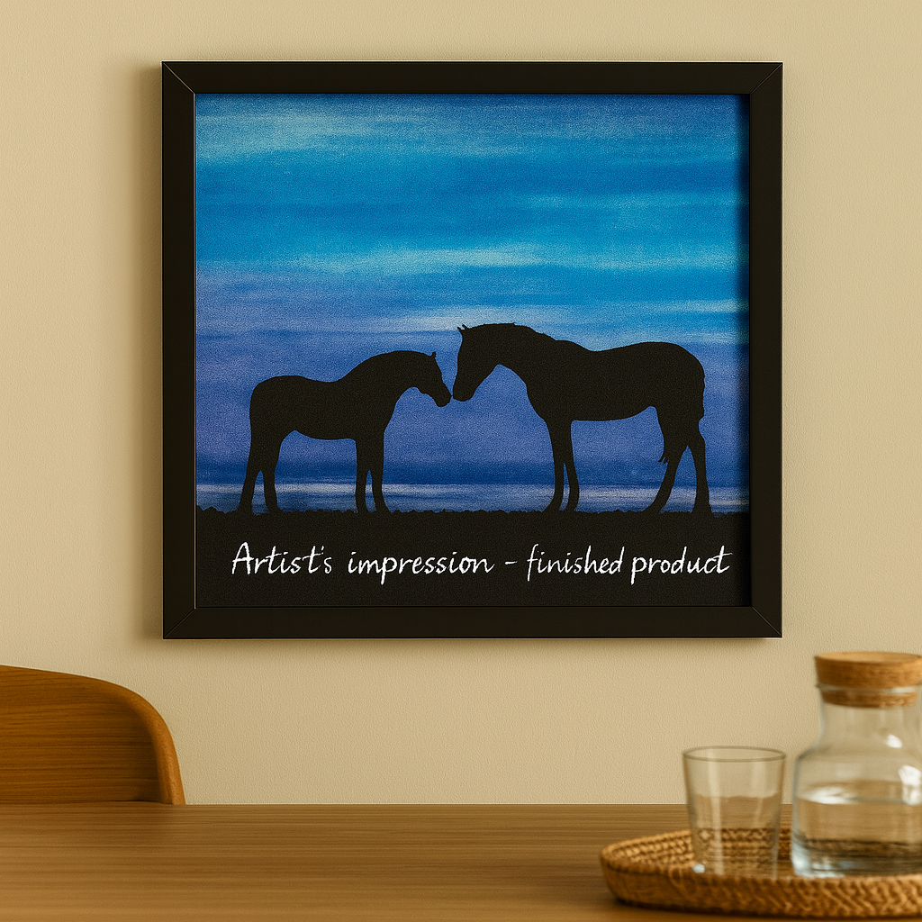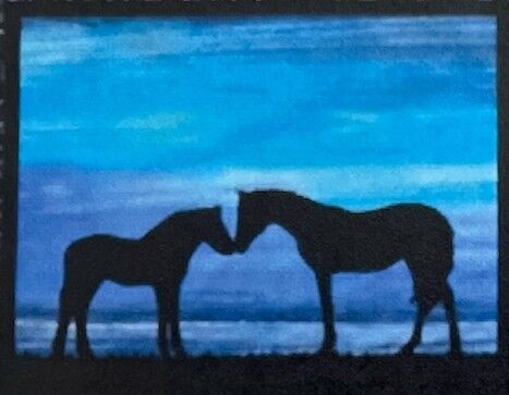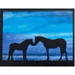 Celebrate the beauty of horses with this touching Horse & Foal Raw Edge Appliqué Kit. Featuring a mare and foal silhouetted against a vibrant batik sunset, this design captures the bond between horse and young, making it a striking choice for display or quilting projects.