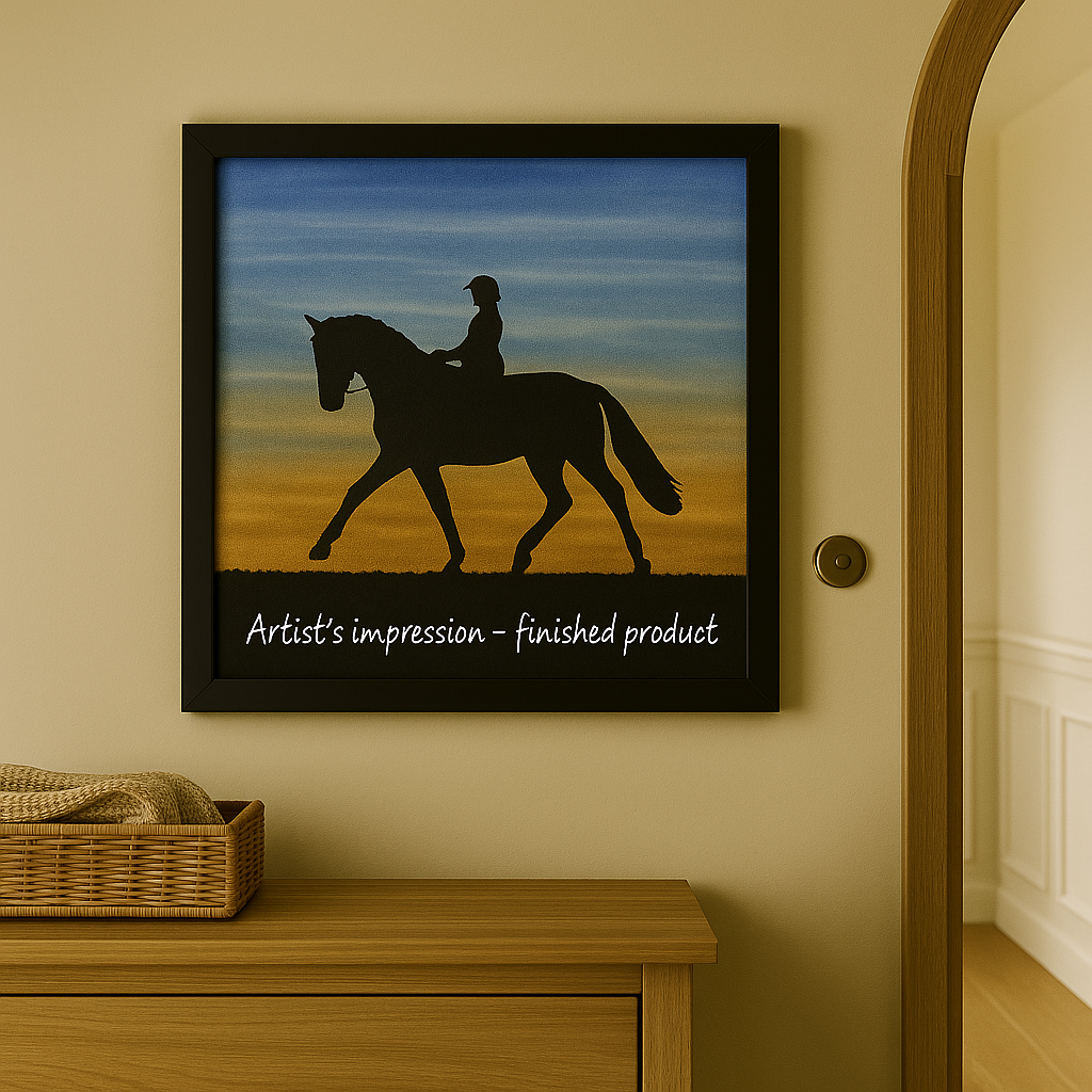 This panel can be wrapped around a frame for a wall display, sewn with other blocks for a quilt, or used as a feature panel for cushions and craft projects. The horse and rider design makes it a timeless piece for any equestrian enthusiast.
