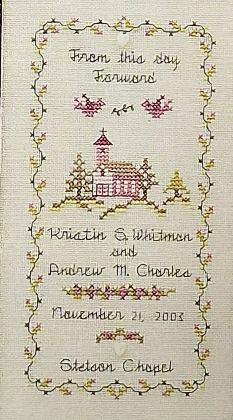 The Marriage Sampler lists the bride and groom's name, the date of the wedding and the church in which it was held.