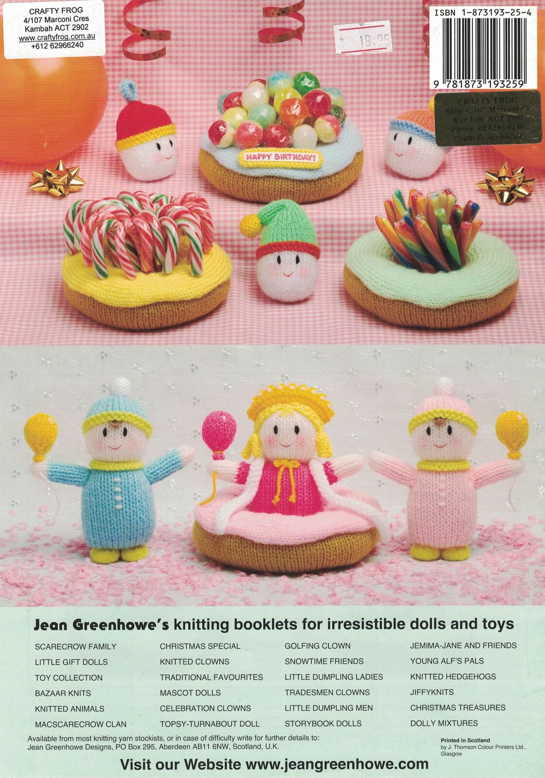 There are Six lovable Dolls which fit snugly into the Donuts. They can be made for a wide variety of celebrations and Jean has provided instructions and suggestions for various greetings captions to personalise the Donuts for particular gifts.