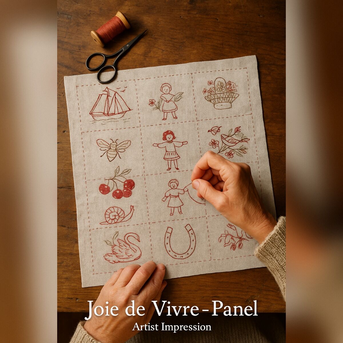 Ideal for baby quilts, decorative projects or combining with the Joie de Vivre fabrics to create a larger heirloom piece.