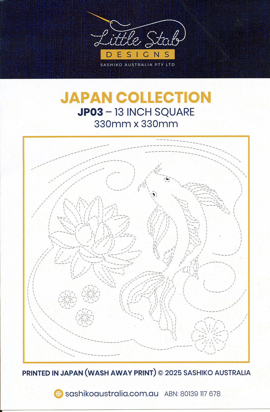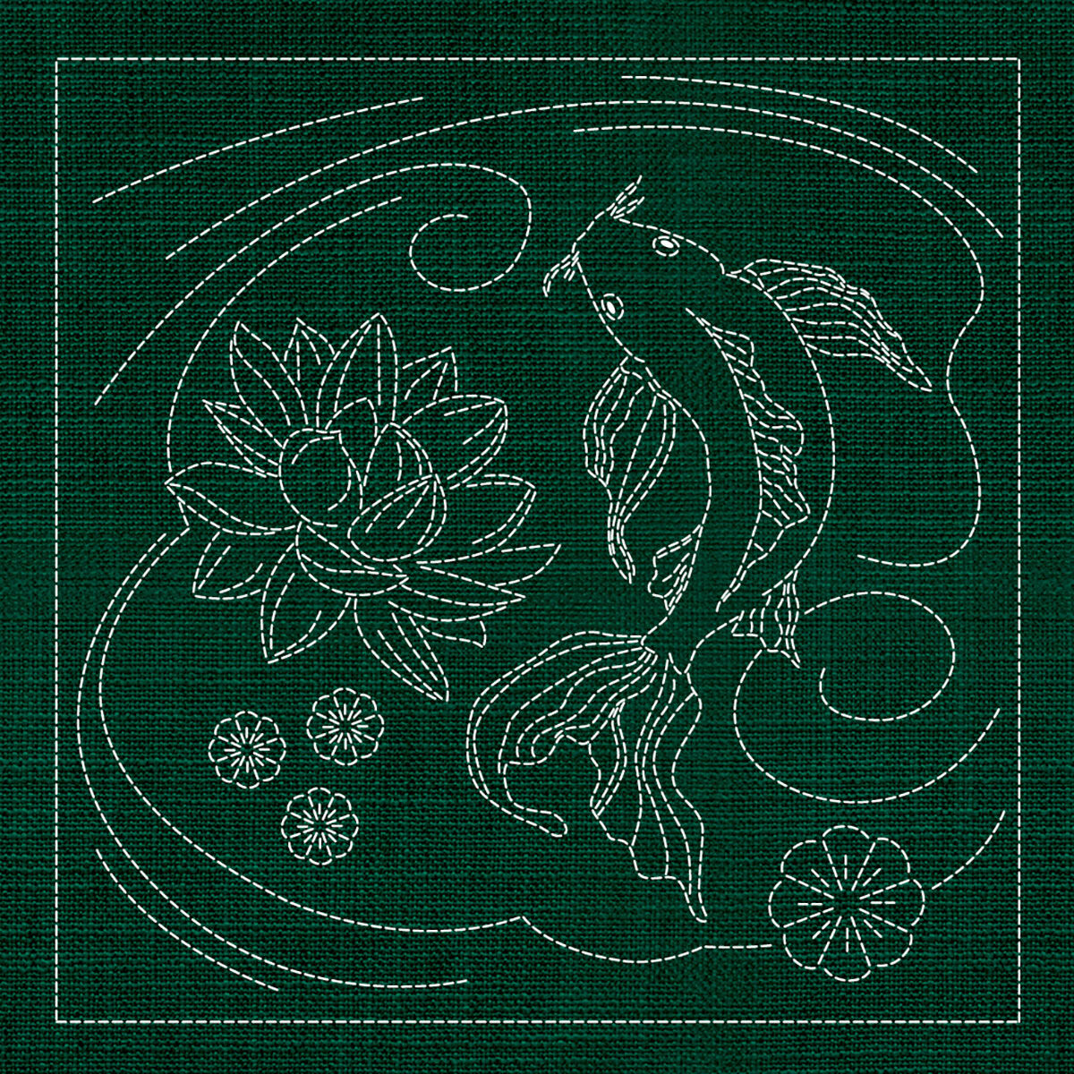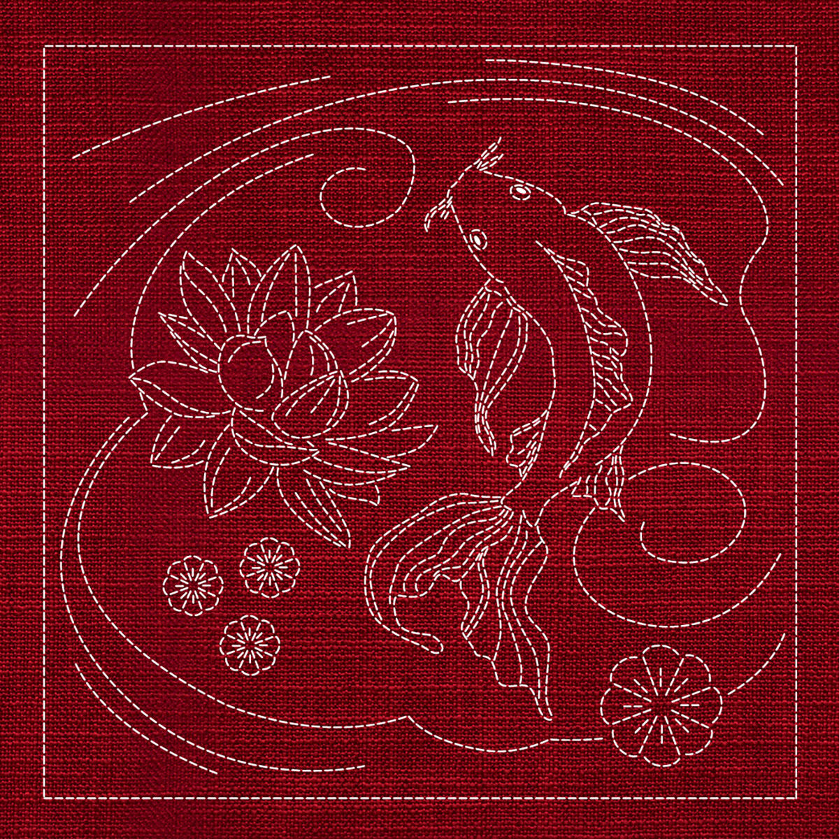 JP03 Butterfly Koi, Lotus & Plum Blossom Sashiko Panel (33cm Square)