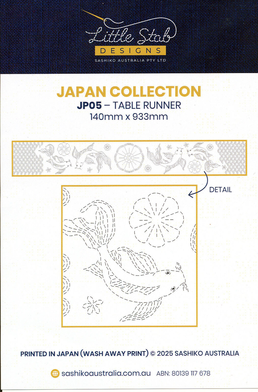 Printed in Japan with wash-away stitch guides, this 93.3cm x 14cm runner is ideal for table décor, dresser runners, or as a stitched feature strip for wall hanging or gifting.