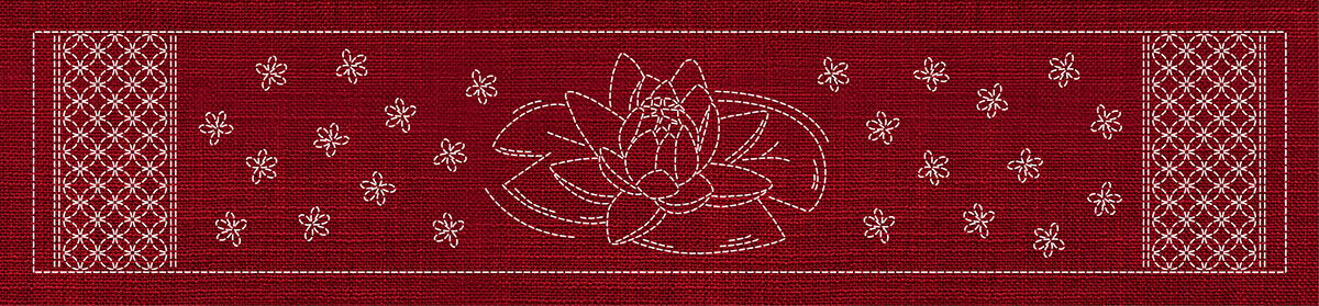 JP06 Lotus Flower & Seven Treasures Sashiko Table Runner