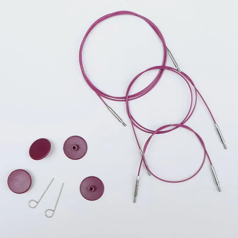 KnitPro’s smooth stainless steel swivel cables are designed for 360 degrees of rotation to avoid twisting. The memory-free cables are made with the finest grade stainless steel core and smooth nylon coating in two attractive shades of black and purple. Available in options from 20 cm to 126 cm, the cables come along with end caps and cable keys used for tightening the tips.