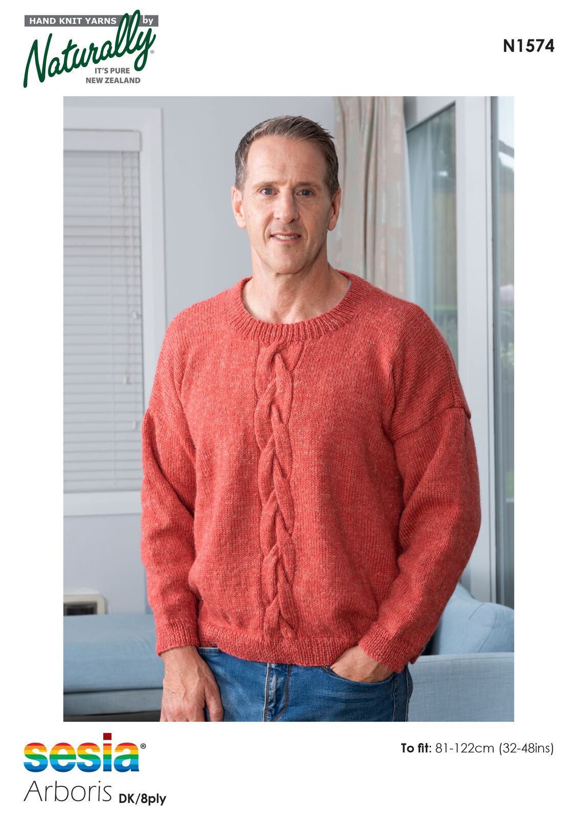 N1574 – Men’s Cable Knit Sweater Pattern (DK / 8ply)
