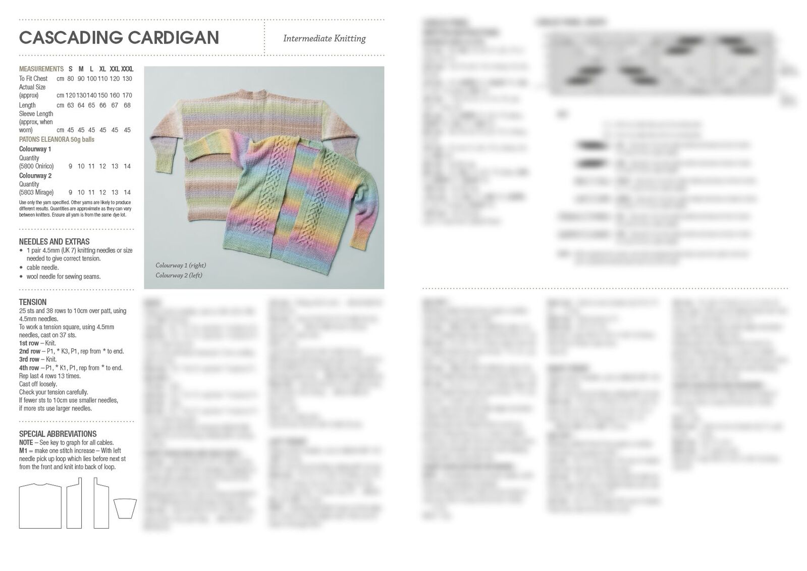 Designed in Patons Eleanora, this contemporary open-front cardigan features bold vertical cable panels that cascade down the body, framed by softly blended colour transitions. The relaxed silhouette and longer length make it an effortless layering piece for cooler seasons.