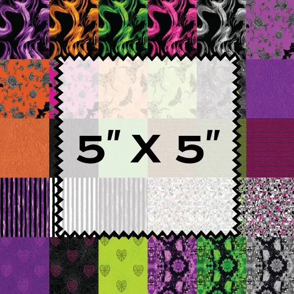 42 pre-cut 5 inch cotton squares in bold Phantasm prints