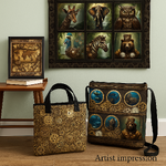 Featuring highly detailed illustration, rich textures, and layered metallic motifs, these fabrics are ideal for dramatic quilts, wall hangings, bags, and statement textile art.