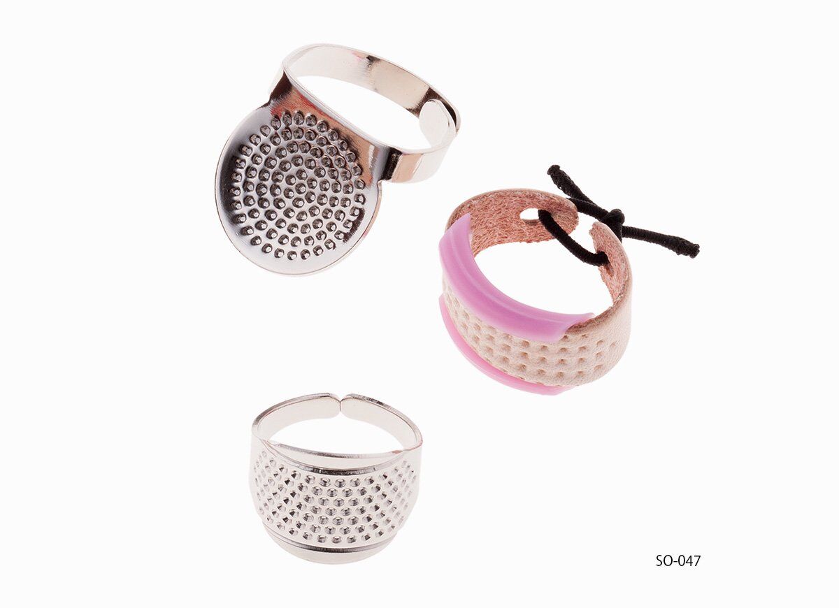 Large metal plate thimble is to be used at the bottom of middle finger, covering part of palm of hand.