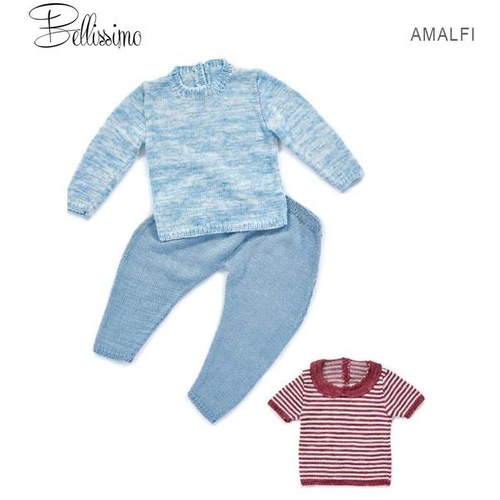 Actual Size 56 cm (approx.) Length 59cm Balls Required 2 x Jumper L/S or S/S Main Colour - 1 x Contrast Colour - 2 x One Colour Jumper L/S or S/S - 2 x Pants 100g Amalfi SkeinsSkeins
