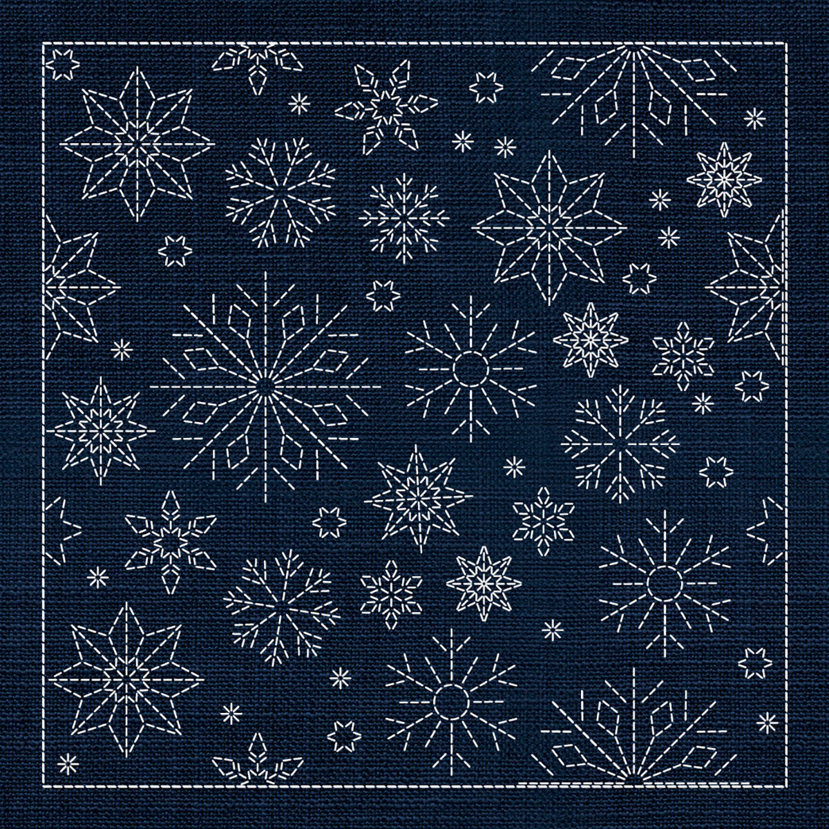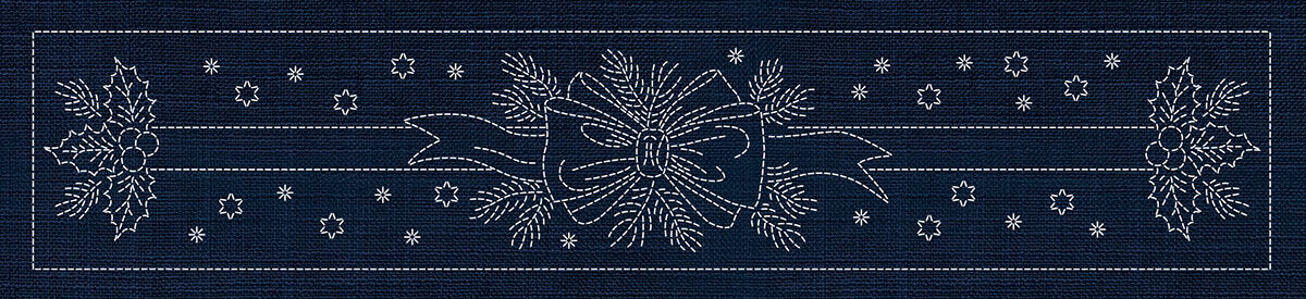 Printed on indigo fabric with pre-marked sashiko stitching lines, this special edition panel offers a striking all-in-one project for stitchers who want a larger statement piece, rather than individual motifs. Ideal for heirloom stitching, wall display, table décor, or creative seasonal projects.