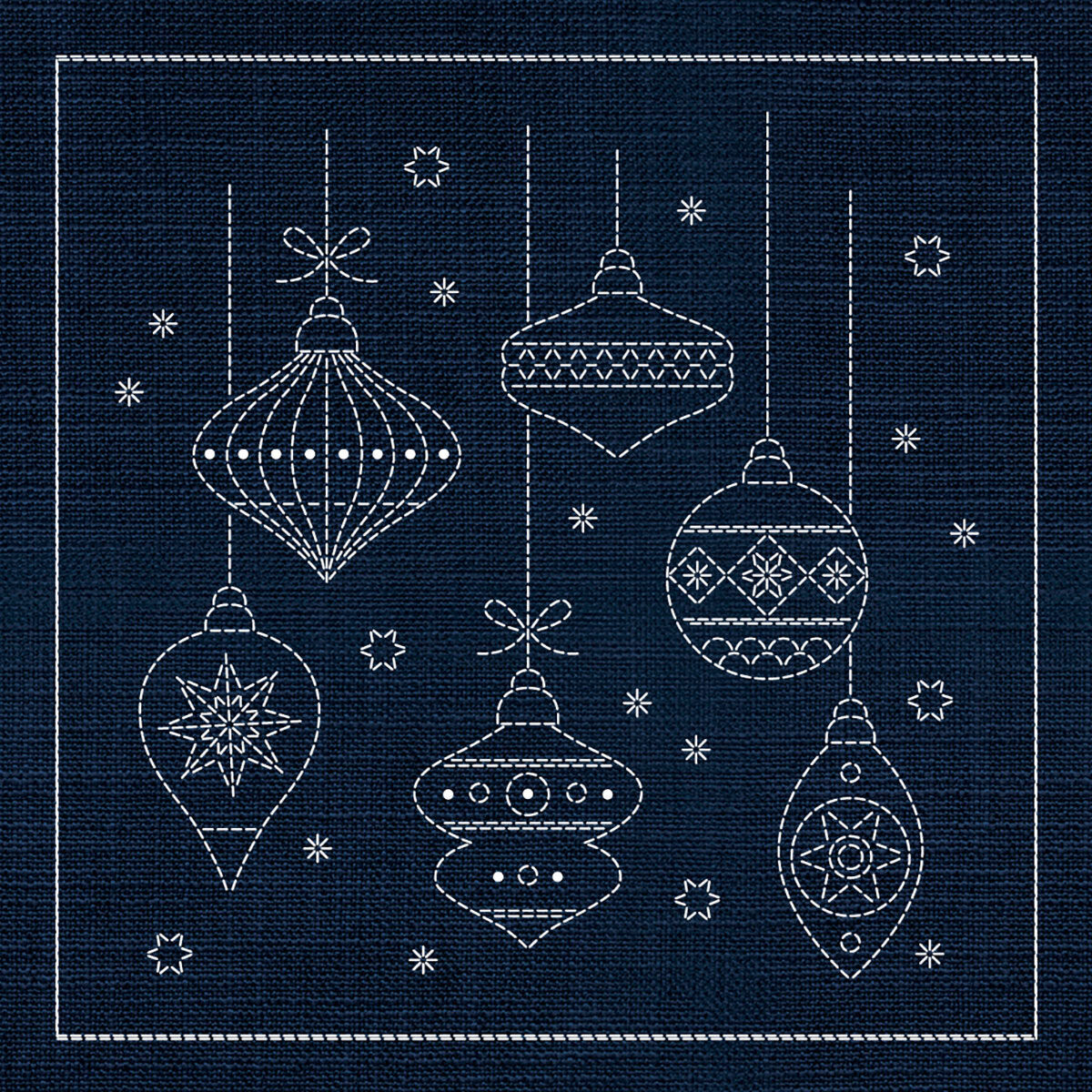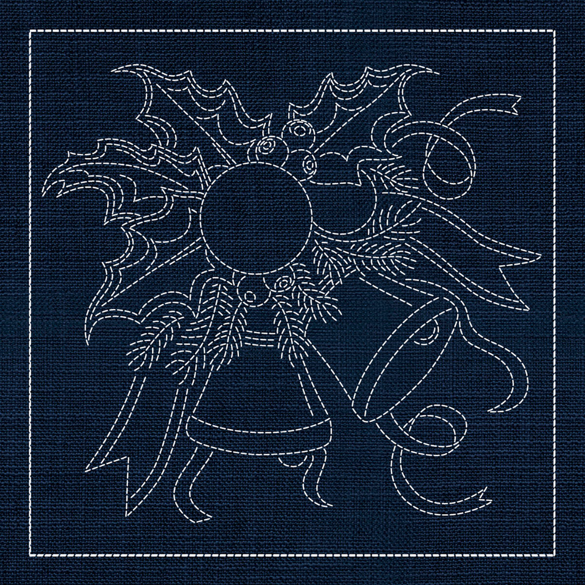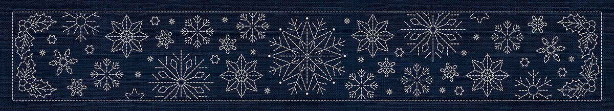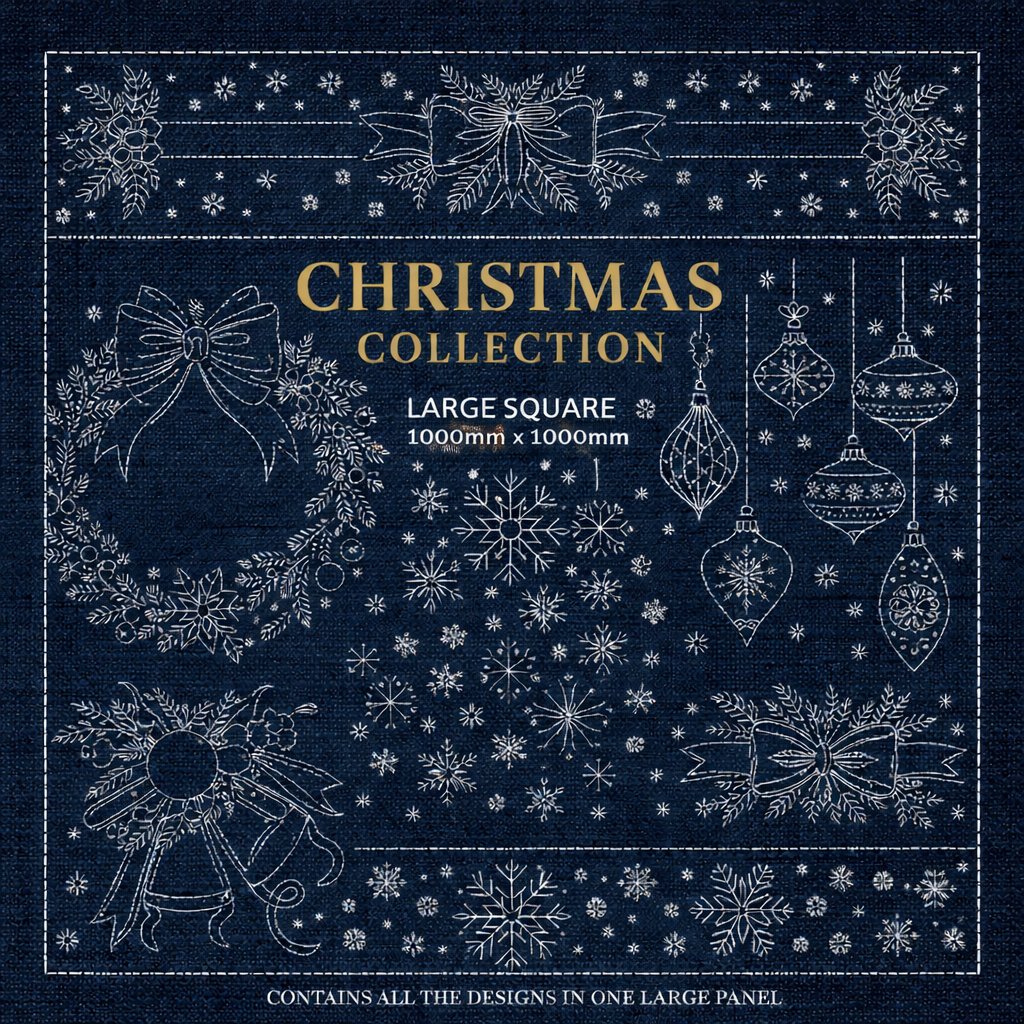 Bring the full beauty of traditional Japanese-inspired Christmas sashiko together in one remarkable panel. XM00-IN Christmas Collection combines the complete set of festive designs into a single extra-large 1000mm x 1000mm panel, including wreaths, ornaments, snowflakes, holly, bells and decorative borders.